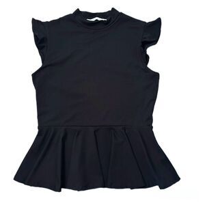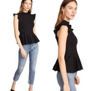 Susana Monaco Flutter Sleeve Peplum Top Black Size L