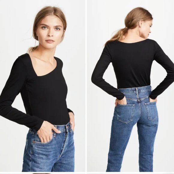 Susana Monaco Laurene Diagonal Neck Top Black Small