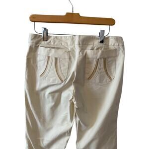 Susana Monaco Low Rise Flared Summer Chino Pants Ivory, size 4. Good preowned condition with a few light dirt marks at one hem - have not attempted to clean them.