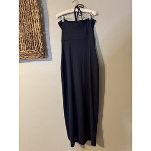 Susana Monaco maxi length bodycon column dress in a size large. Solid midnight navy blue in color. Super stretchy, nylon/spandex. Machine washable. Made in the USA.