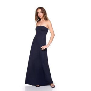 Susana Monaco Midi Tube Dress L Large Black Strapless Bodycon Full NEW
