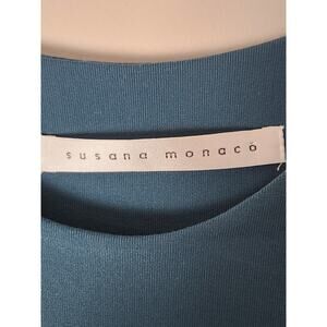 Susana Monaco Mini Dress Size Medium Teal Blue Pleated Cap Sleeve Stretch