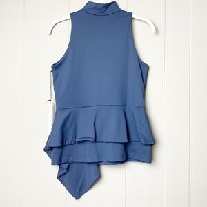 Susana Monaco NWT mock neck ponte knit peplum top asymmetric steel blue blouse sleeveless career