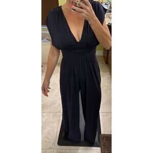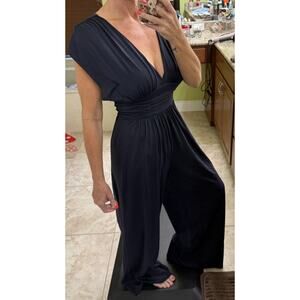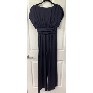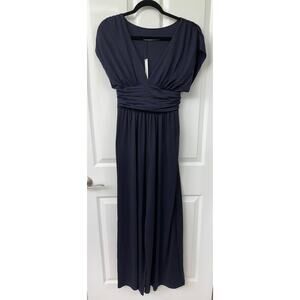 Susana Monaco Navy blue jumpsuit NWT wide leg v neck short sleeve $228 retail small