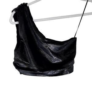 Susana Monaco One Arm Crop Top in Black Metallic NWT Size Small