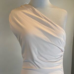 SUSANA MONACO SZ S Nude One Arm Side String Ruched Sides Dress NWT $89.