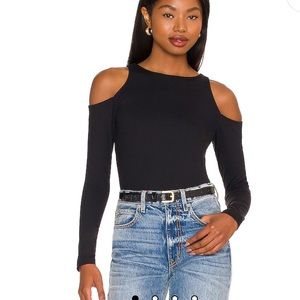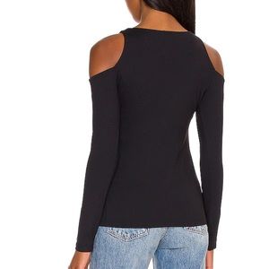 Susana Monaco Open Shoulder Long Sleeve Crew Top in Black XS