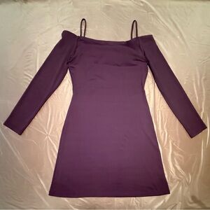 Susana Monaco Purple Long Sleeve Cold Shoulder Stretch Midi Dress Size Large