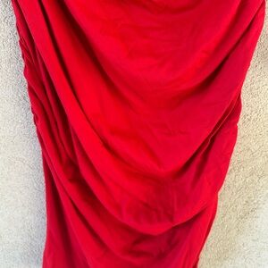 Susana Monaco Red Asymmetrical Shoulder Tube Dress / Ruched Stretchy