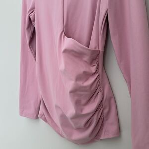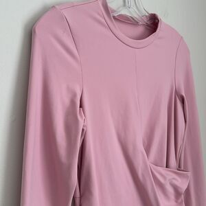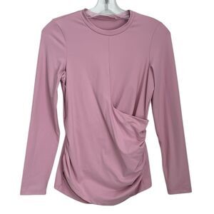 Susana Monaco Revolve Faux Wrap Crew Jersey Top Shirt Blouse Candy Pink Ruched Size M