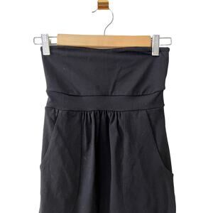 Susana Monaco black strapless flared tube dress with pockets, size S. Good preowned condition, nylon Lycra blend