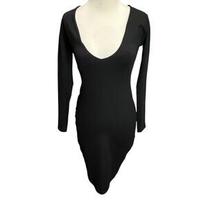 Susana Monaco Revolve V Neck Fitted Dress XS Black Stretch Bodycon Cocktail LBD