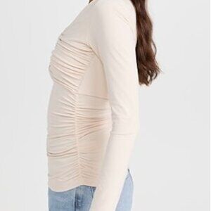 Susana Monaco + Revolve v neck gathered long sleeve Top Beige Sz M NWT