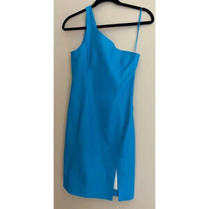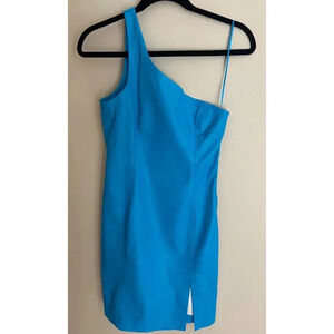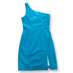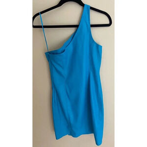 Susana Monaco Sexy One Shoulder Faux Leather Mini Dress in Blue Size Medium