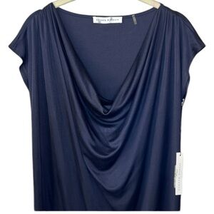 Elegant midnight blue draped dress perfect for any occasion. The sleek design offers a flattering fit.
