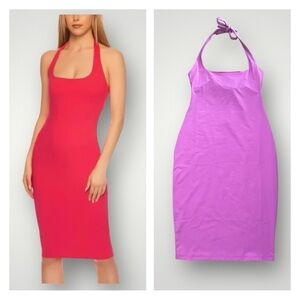 NWT: Heat up your next night out in this flirty fit-and-flare minidress crafted with halter tie from the brand's signature stretch fabric.