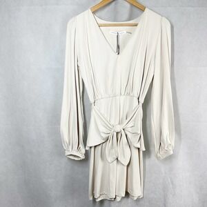 Susana Monaco Tie Panel Gathered Sleeve Dress Cream Size Small