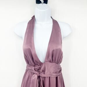 Susana Monaco Womens 100% Silk Y2K Plunge Halter Neck Mini Slip Dress in Mauve Purple. Size 2.