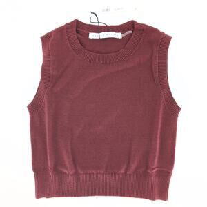 Susana Monaco Womens Crop Crewneck Sleeveless Fine Knit Sweater Jumper Top in Terracotta - Size XS - NEW