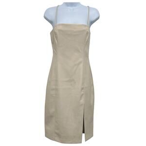 Susana Monaco Womens Large Faux Leather Sheath Dress Almond Slit Back Zip NWT