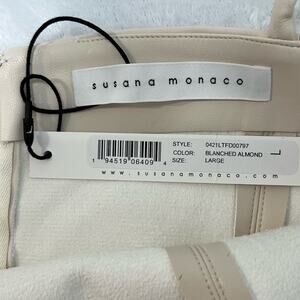 Susana Monaco Womens Size Large Faux Leather Sleeveless Sheath Dress Cream Blanched Almond Front Slit Back Zipper Square Neck Unlined NWT