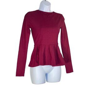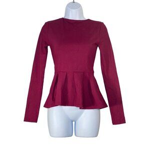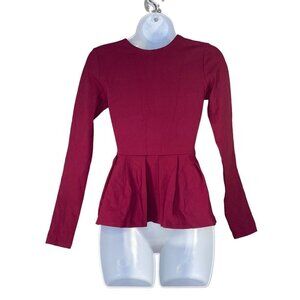 Susana Monaco Womens Long Sleeve Peplum Top Wild Berry Size XS