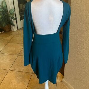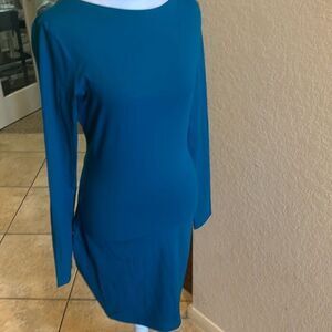 Susana Monaco Womens M Long Sleeve Square Open Back Dress Sea Blue Simple Classy