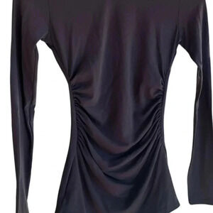 Susana Monaco Women's Mock Neck Long Sleeve Ruched Top in Charcoal Sz XS
