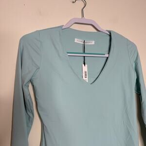 Susana Monaco Womens Solid V-Neck Top - Blue NWT Size XS
