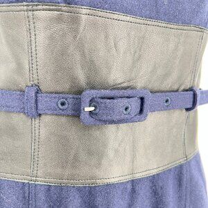 Susana Monaco Wool Blend Belted Navy Blue Leather Panel Dress Size 4 NWT
