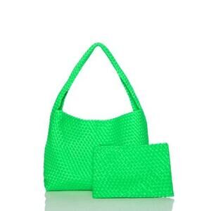 Susana Monaco Woven Shoulder Hobo Bag Zing Neon Green Matching Pouch Large NEW MSRP $