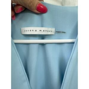 Susana Monaco XS light blue mini dress cocktail date simple sky puff shoulder