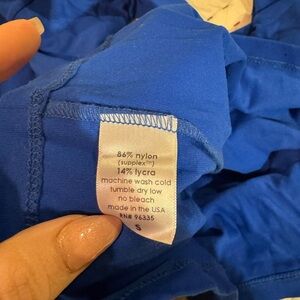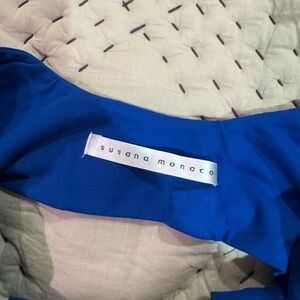 Up for sale is a beautiful Susana Monaco fitted Long Sleeve Blue Top with Criss Cross Back Sz S.