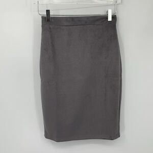 Susana Monaco slim pencil midi faux suede skirt silver gray straight new Small