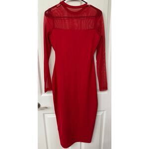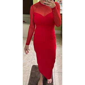 Susana Monaco small red midi long sleeve mesh sweetheart line NWT ($248 retail) formal, semi formal, date night, valentines day, sweetheart, prom, dance, event,