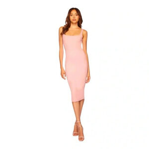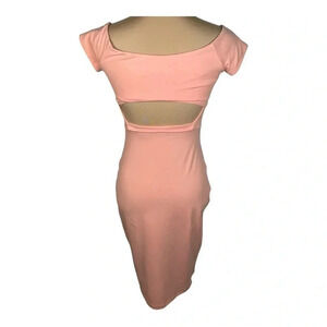 STUNNING dress! NWT. Still at Niemens for $178! but everywhere online is sold out of this color: "Peaches" It's a Midi. Hits at knee. Has a back cutout, and no bra is needed bc it has built-in breast support with perfect support! Makes breast's and hips look amazing, exactly like Joan on Madmen. A sexy yet classy, modest dress.