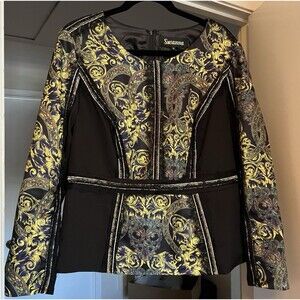 Susanna By Teramina Slimming Black & Gold Skirt Suit Size 14 Long Sleeve
