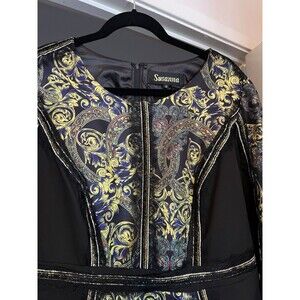 Susanna By Teramina Slimming Black Gold Skirt Suit Size 14 Long Sleeve Elegant