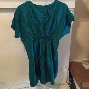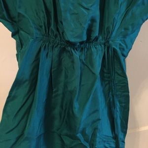 100% silk dolman sleeve cinch waist dress size 8. Beautiful deep teal color. Think of all the fun ways you can accessorize this look! Falls above the knee. Great dress for spring and summer weddings!