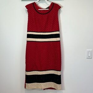 Susanna tweed sheath dress matching jacketed striped metallic red/black 16 size