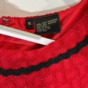 Susanna tweed sheath dress matching jacketed striped metallic red/black 16 size
