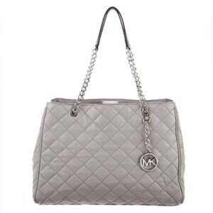 MICHAEL KORS Susannah Quilted Grey Lamb Leather Tote Bag