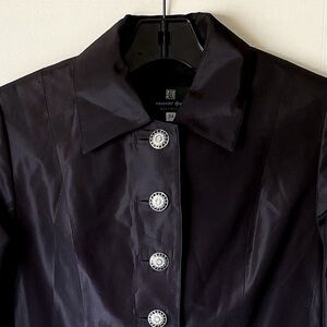Susanne Spatt Silk Rhinestone Trench Jacket Black Size 34 NWOT
