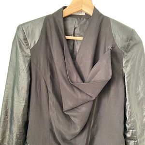 Susee Drape Front Cowl Neck Moto Jacket in Black Size Medium