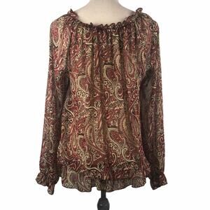 Sushi Flowers Paisley Print Sheer Blouse Large