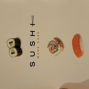 Set includes: Book, bamboo spoon, two rolling mats, and three sets of chopsticks.