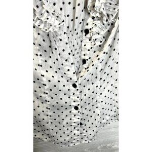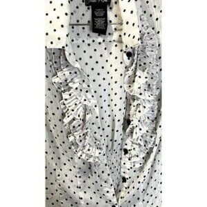 Susie Rose Polkadot Button Up Womens Ruffle Sleeveless Semi-sheer Top