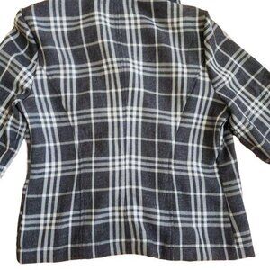 This tailored plaid peacoat offers a timeless design with a double-breasted front and classic lapels. Its versatile style makes it suitable for layering.