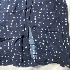 Don’t miss out on this amazing Susie Winkle skirt. Navy blue with white polka dots. With a corded elastic waist. Features 3 buttons at the front slit. This skirt is just stunning in person. Comes from a smoke free home