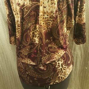 Susie in the City Stretch Top Cowl Neck Brown Smal